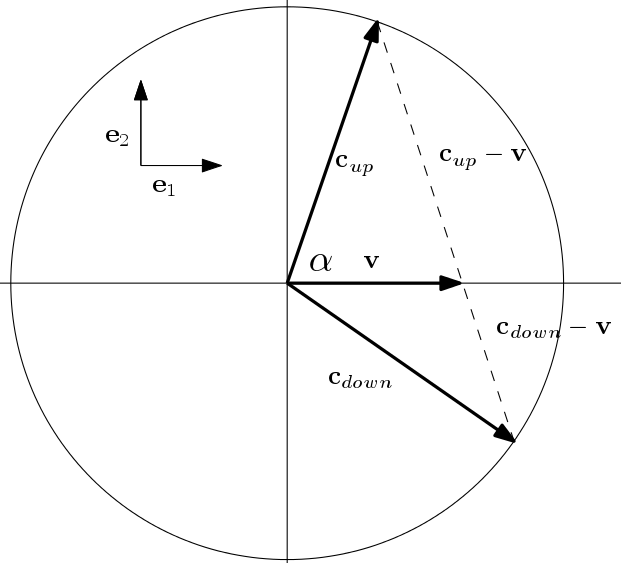 The Loading... can be further simplified if we look in detail to the direction of the vectors v, cdown and cup. Since the photon in F′ follows the same direction going to the mirror and back to the source, cdown−v and cup−v are parallel, but have different magnitude; hence cup, cdown and v are all in the same plane, see Fig (3). In the system of reference of three mutually orthogonal unit vectors e1, e2, and e3, with e1 and e2 in the same plane of cup and v, and e1 in the same direction of v, the vector p has components,